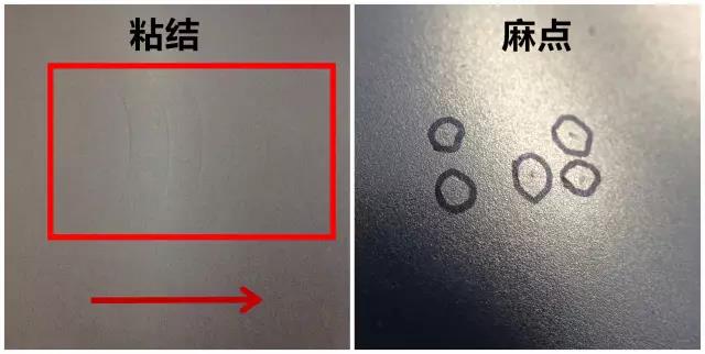 罩退料沒“麻點”,連退料無“粘結”;罩退料較臟、連退料干凈;罩退有“挫傷”、連退有“劃傷”等等。